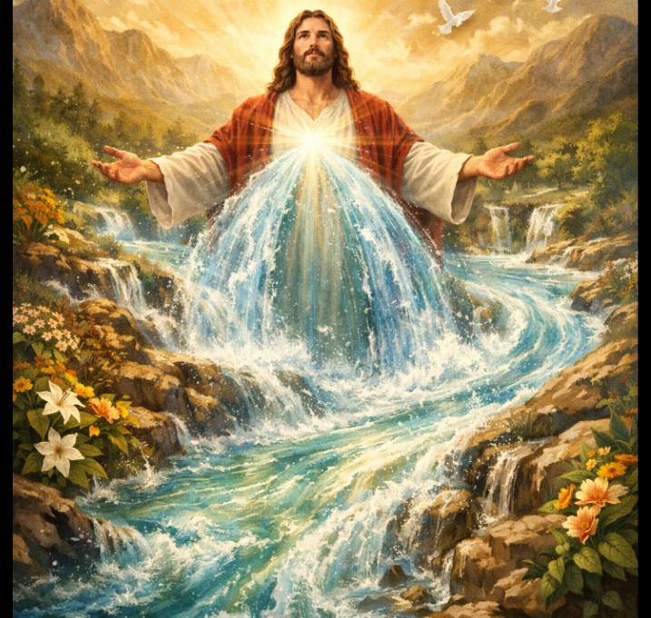 Jo 7:38: "Quem crer em mim, como diz a Escritura, do seu interior fluirão rios de água viva."