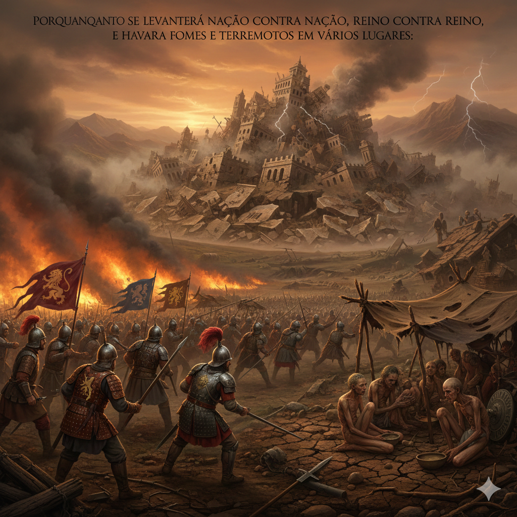 Mt 24:7: "Porquanto se levantará nação contra nação, reino contra reino, e haverá fomes e terremotos em vários lugares;"