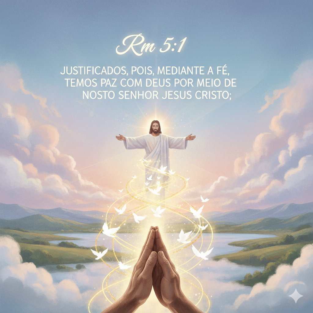 Rm 5:1: "Justificados, pois, mediante a fé, temos paz com Deus por meio de nosso Senhor Jesus Cristo;"